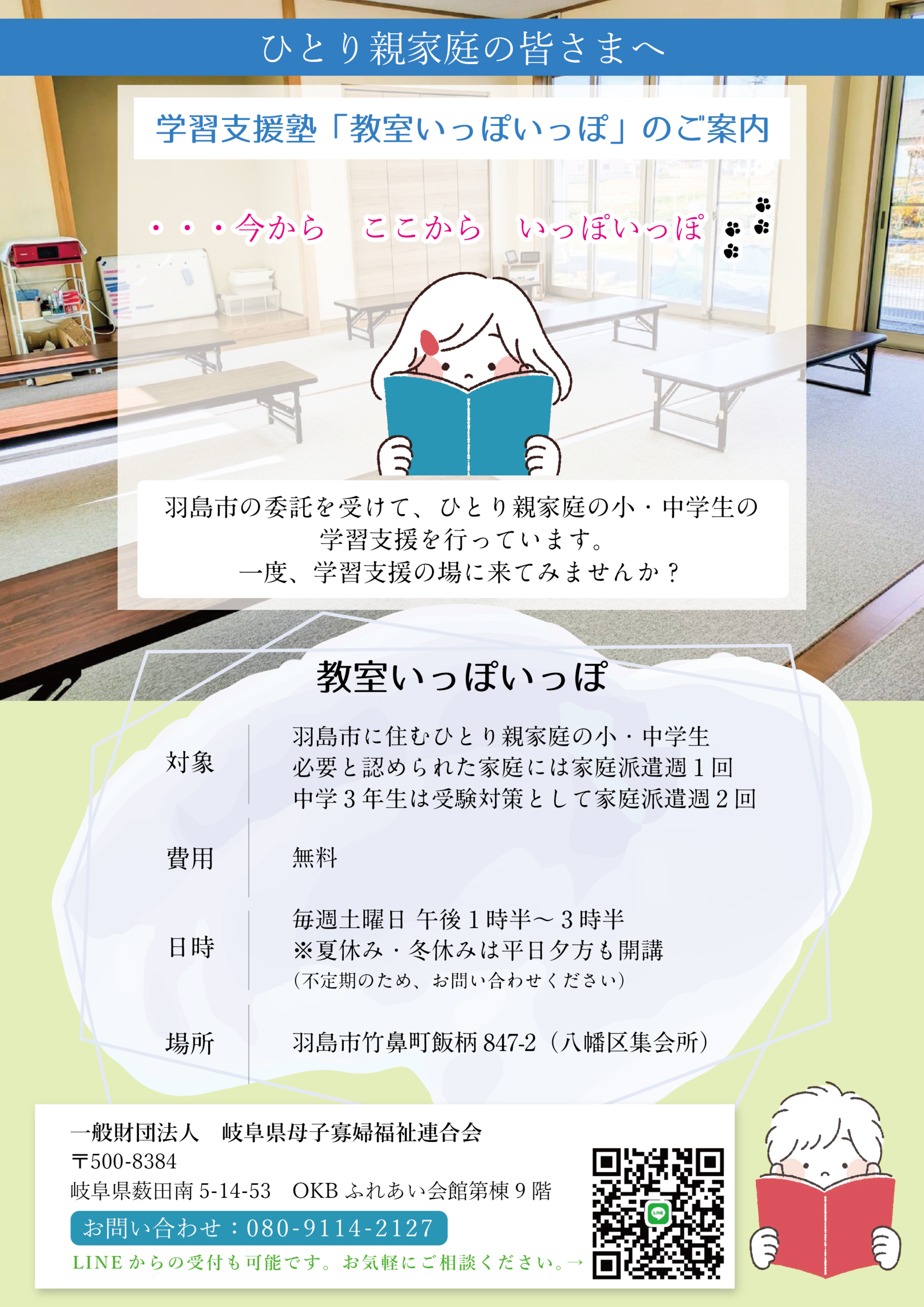 「教室いっぽいっぽ」というのは、学習支援ボランティアにより、学習のお手伝いを行う羽島市内の教室の名前です。